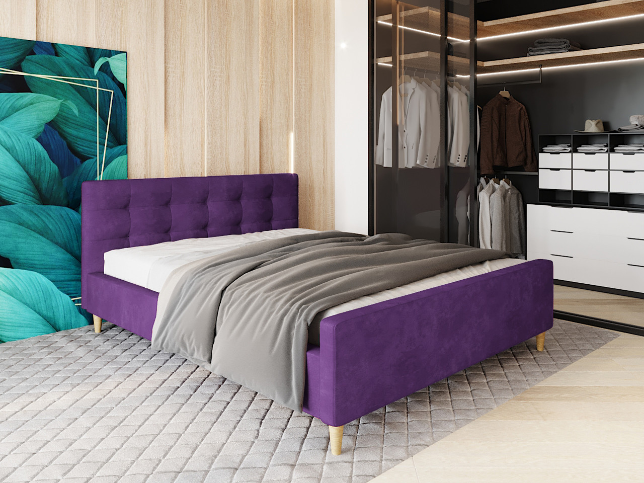 Кровать PINKO 160/200 фиолетовый вельвет